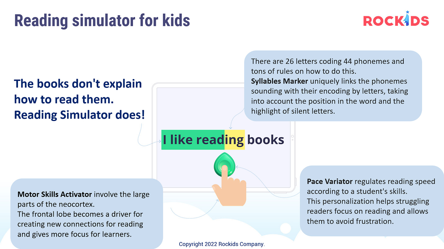 The Reading Simulator - a noninvasive neurolink for kids to get reading naturally and prevent dyslexia reading issues.